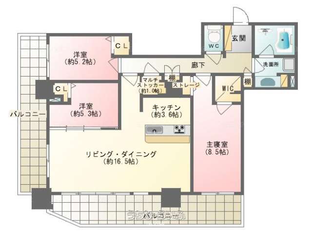 3LDK/敷金2か月・礼金1か月/南向きの角部屋/対面キッチン/ビルドイン食洗器・オーブン/インターネット完備/ラウンジ・ゲストルームあり/立体駐車場